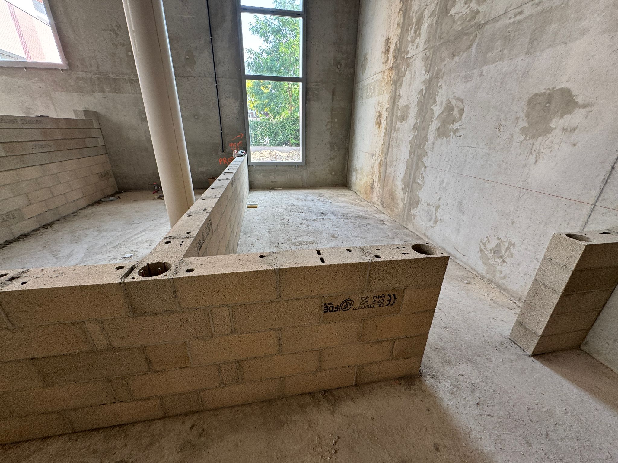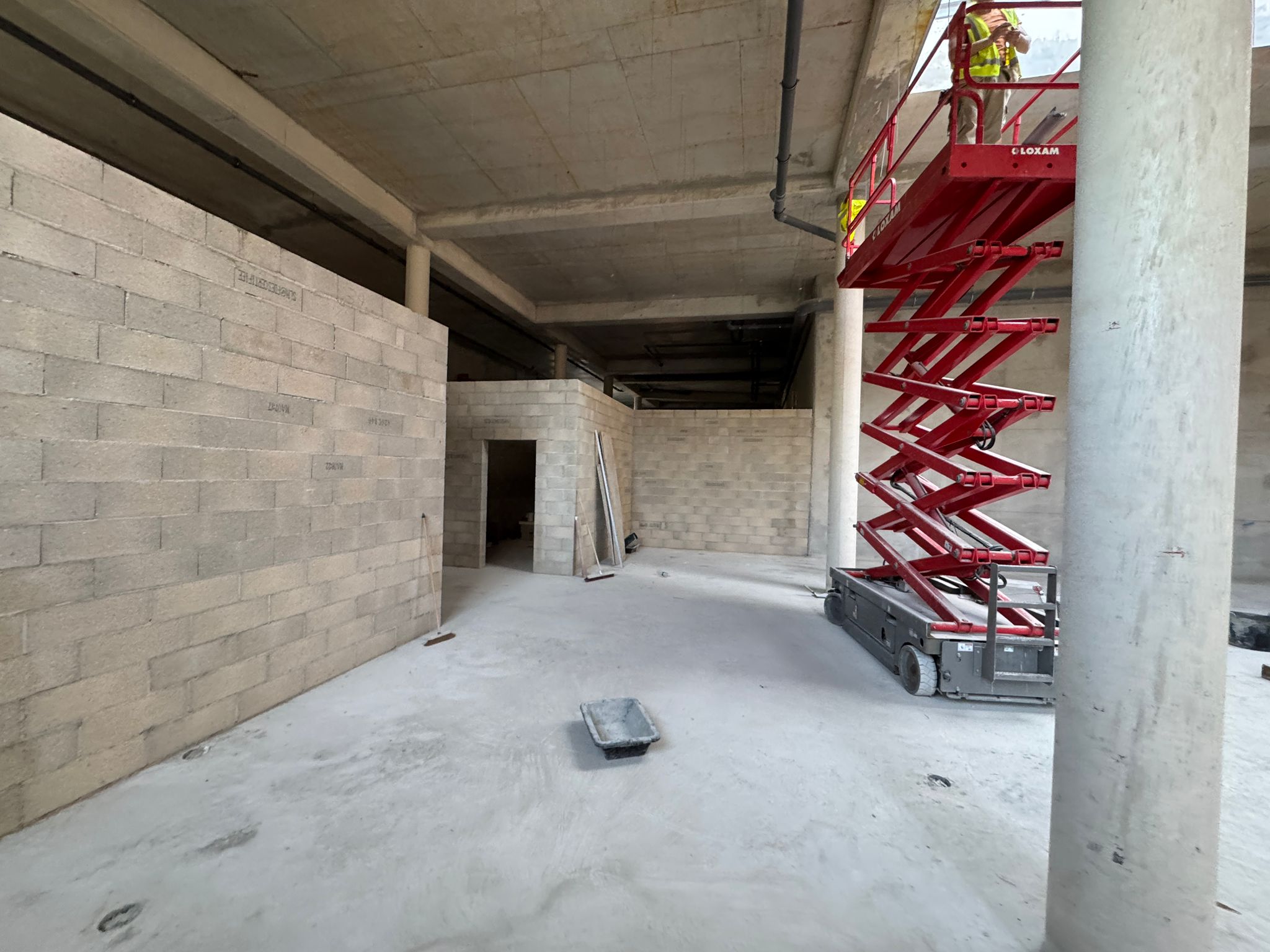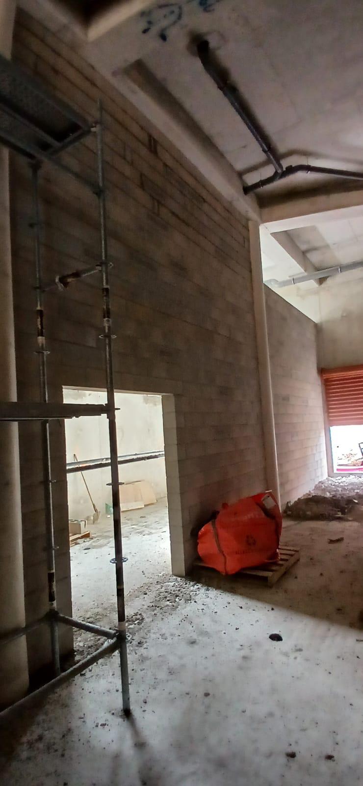 Ce projet de construction bâtiment commercial illustre la capacité d’ADN BTP à accompagner la réalisation complète d’un bâtiment professionnel, depuis la structuration du volume jusqu’à l’organisation des espaces intérieurs. Les photos montrent un chantier en cours de création avec une trame béton existante, de grandes hauteurs sous plafond, des murs périphériques bruts et un important travail de maçonnerie intérieure pour définir les futurs usages du bâtiment.